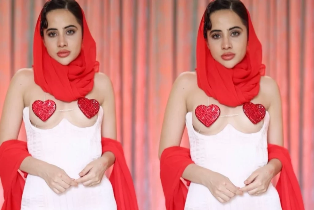 इस लुक को उर्फी ने अपने इंस्टाग्राम से शेयर किया है जिसके कैप्शन में उन्होंने लिखा, “कौन है ये 4 लोग।” वहीं वीडियो में वह कहती है “कपड़े ऐसे पहनो कि 4 लोग बोले यह भी क्यों पहना है।” इस लुक की बात करें तो हमेशा की तरह यह काफी अजीब है। वीडियो में आप देख सकते हैं कि वह व्हाइट कलर की शॉर्ट ड्रेस में नजर आ रही है लेकिन इस ड्रेस को वह खास अंदाज में डिजाइन करती दिखी। ड्रेस को वह ट्यूब स्टाइल बनाती हुई नजर आई हैं और खास बात यह है कि वह ऊपर से इसे कटकर बॉडी शेप में की हुई है। वही अपनी इज्जत को छिपाने के लिए दो रेड हार्ट शेप को चिपकाई हुई है। इस लुक को कंप्लीट करने के लिए उन्होंने एक दुपट्टे को कैरी किया है वहीं एक दुपट्टे से वह हिजाब स्टाइल करती दिखी हैं।