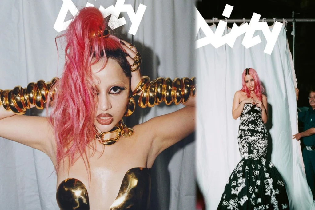 वायरल हो रही तस्वीरों की बात करें तो उर्फी जावेद ने यह फोटोशूट ‘दि डर्टी मैगजीन’ के लिए करवाया है। इस लुक की बात करें तो उर्फी ब्लैक एंड व्हाइट गाउन ड्रेस में नजर आ रही हैं। इस ड्रेस में Dirty प्रिंट है और उन्होंने लुक को पिंक बालों से कम्पलीट किया और एक बार फिर आइब्रो के साथ एक्सपेरिमेंट किया है।
