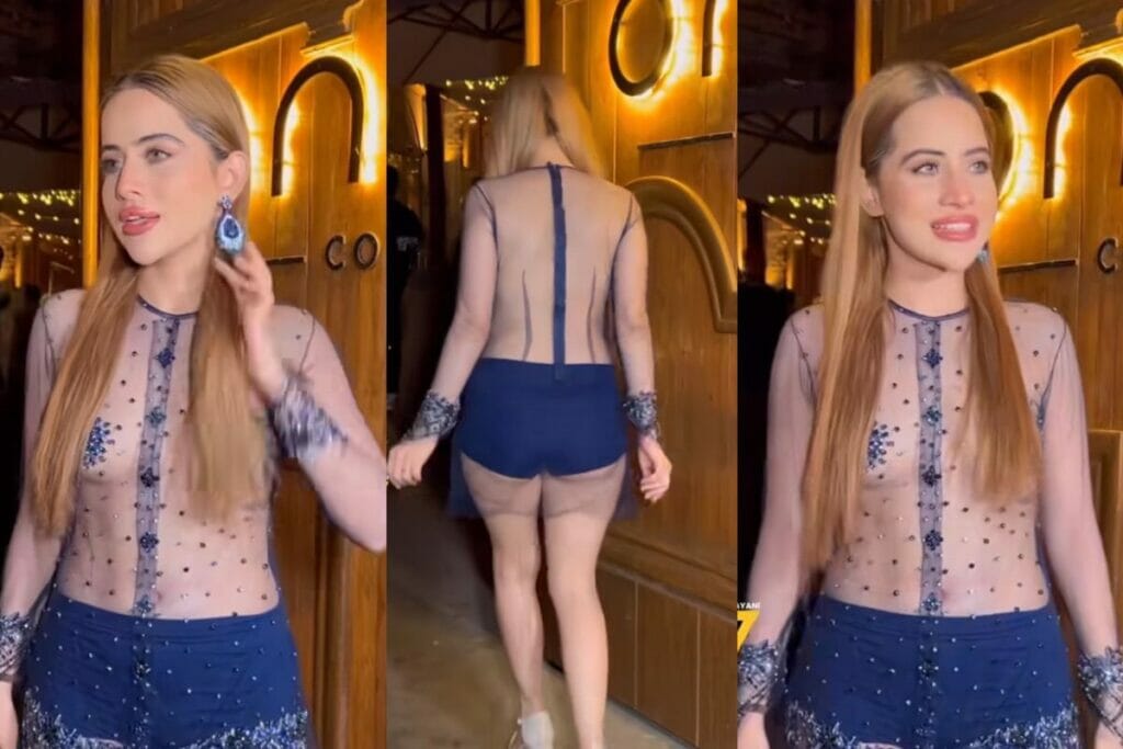 शनिवार को Urfi Javed का एक वीडियो विरल भायानी द्वारा शेयर किया गया है। इस वीडियो में उर्फी मुंबई के जूहू स्थित भारतीय क्रिकेटर विराट कोहली के रेस्टोरेंट ‘वन 8 कम्यून’ के अंदर जाते समय पैपराज़ द्वारा स्पॉट की गईं। इस दौरान उर्फी ने नीले रंग का एक मेश (नेट) आउटफ़िट पहना था जिसमे उनकी उपर की बॉडी दिख रही थी। यह आउटफ़िट उपर से तो पूरा ट्रांसपेरेंट था मगर नीचे की तरफ़ इसमें एक नीले रंग की स्कर्ट दी गई थी। वहीं इस आउटफ़िट पर सुंदर स्टोन वर्क किया गया था।