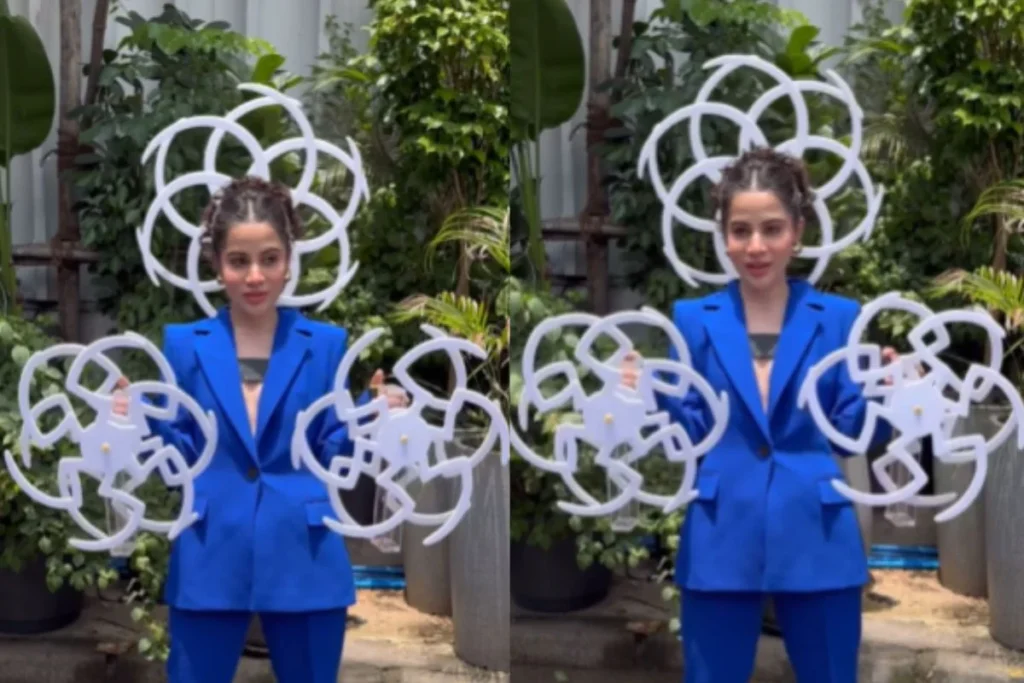 जहां तक उर्फी जावेद के इस लुक की बात करें उन्होंने ब्लू सूट पैंट को स्टाइल किया है। न्यूड कलर इनर के साथ वह इस सूट को पेयर करती हुई नजर आई लेकिन लोगों की निगाहें तो उनके हाथ और उनके पीठ पर अटकी हुई पंखे ने खींच ली है। जिसे देखने के बाद लोगों का दिमाग घूम गया। यह समझ में नहीं आ रहा है कि आखिर उर्फी करना क्या चाहती हैं और उसने अपने लुक को मिडल पार्टेड स्टाइलिश हेयरस्टाइल के साथ हाई हील से कंप्लीट कर रही है।