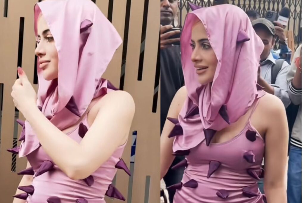 मंगलवार को Urfi Javed को मुंबई में लैवेंडर रंग की आउटफ़िट में देखा गया। इस आउटफ़िट की ख़ास बात यह है की इसपर बैंगनी रंग के सींग बने हुए हैं। अपनी इस ड्रेस को उर्फी ने लैवेंडर रंग के हिजाब के साथ पेयर किया जिसपर उनकी ड्रेस की तरह ही बैंगनी रंग के सींग बने हुए थे। यह वीडियो अब तेज़ी से सोशल मीडिया पर वायरल हो रहा है।