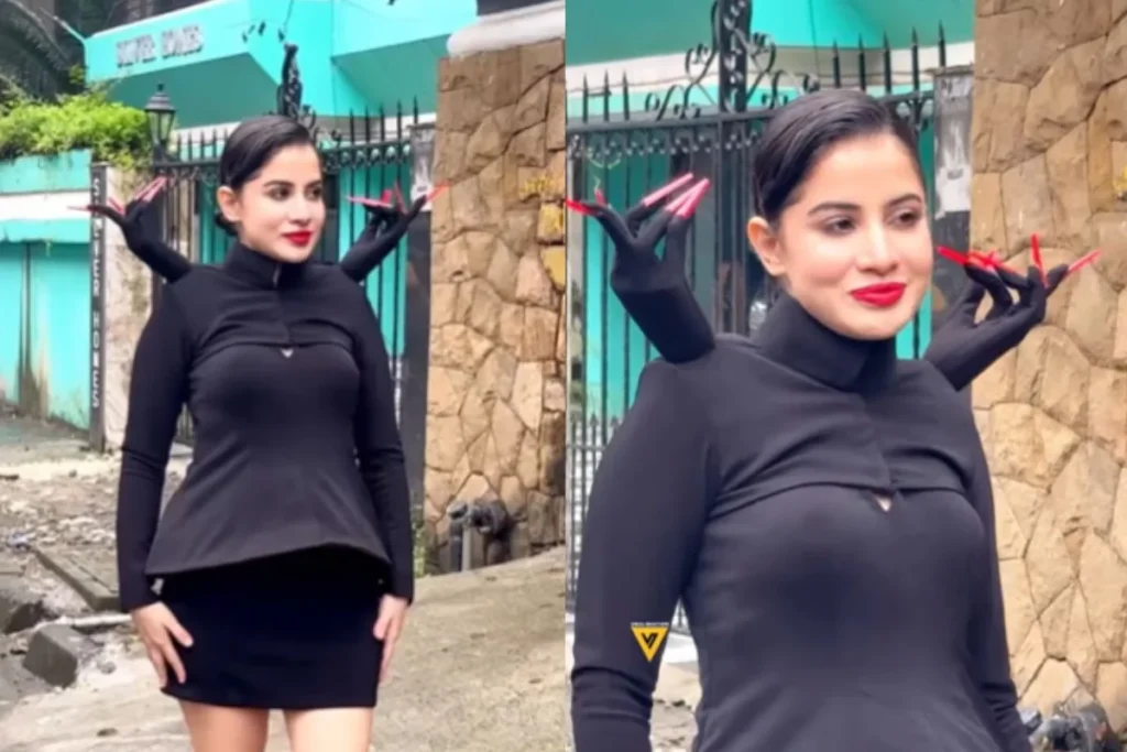 Urfi Javed के लेटेस्ट लुक की बात करें तो वह ब्लैक कोर्सेट टॉप को शॉर्ट स्कर्ट के साथ पेयर करती हुई दिखी है जो वाकई काफी अजीब गरीब है। हैरान कर देने वाला फैशन तो कुछ और है जहां ब्लैक आउटफिट के शोल्डर पर दो हाथ निकले हुए नजर आ रहे हैं जो काफी अलग है। इस हाथ और नाखून को देखकर कोई भी खौफ का जाए। उर्फी जावेद ने इस चौका देने वाले लुक को जिस तरह से कैरी करती हुई नजर आई उसे देख यूजर्स को भी झटका लगा। लिपस्टिक और ब्लैक हाई हील से इसे कंप्लीट टच दे रही है।