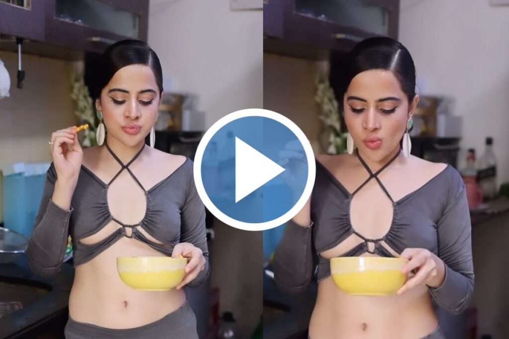 सोशल मीडिया पर वायरल रहे इस वीडियो में आप देख सकते हैं कि उर्फी ब्लैक कटआउट को-आर्ड ड्रेस में नजर आ रही है। इस दौरान उन्होंने मिनिमल मेकअप और सिंपल हेयर स्टाइल के साथ इयररिंग्स से इस लुक को कंप्लीट किया है। वहीं जिसने लोगों का ध्यान खींचा वह है उर्फी का अलग स्टाइल में कुरकुरे खाने का अंदाज। वीडियो में उर्फी के हाथ में टू यम का एक पैकेट होता है जिसे वह खोलकर पानी में साफ करती है और उसके बाद उसे खाती है।