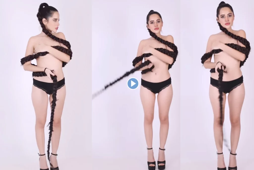 वायरल हो रहे इस वीडियो की बात करें तो इसमें उर्फी चोटी से जिस्म छिपाती नजर आ रही हैं। उर्फी इस वीडियो में हाई चोटी लुक में दिख रही हैं। उन्होंने चोटी से ऊपर बदन ढकती दिख रही हैं वहीं नीचे सिर्फ वह पेंटी में नजर आईं। इस लुक को उन्होंने एक ब्लैक हाई हील्स से कम्पलीट किया है। वह इस लुक को ग्लॉसी मेकअप से खास बना रही हैं। इस बात में कि दोराय नहीं है कि उर्फी इस वीडियो में काफी बोल्ड पोज दे रही हैं जिसे देख फैंस लगातार मदहोश हो रहे हैं।