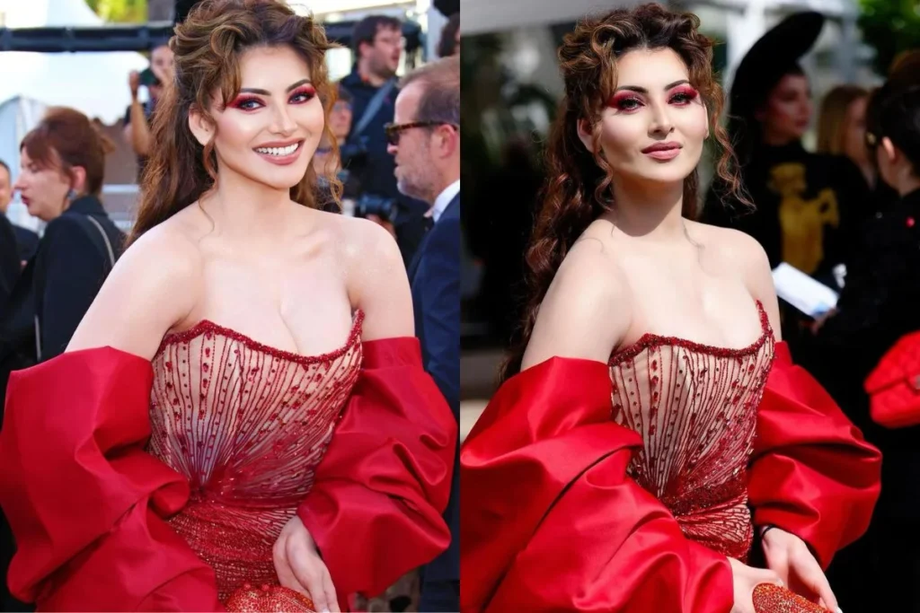 हाल में उर्वशी ने अपने सोशल मीडिया अकाउंट पर कांस फिल्म फेस्टिवल के सेकंड लुक की तस्वीरें शेयर की हैं जिसमें, उर्वशी बेहद स्टाइलिश रेड ऑफ शोल्डर स्टोन वर्क गाउन में नजर आ रही हैं। यहीं आपको बता दें, एक्ट्रेस ने अपने इस लुक को और भी क्लासी बनाने के लिए पफ्ड स्लीव लॉन्ग शृग के साथ कर्ली हेयर्स एंड रेड ऑय मेकअप को चुना। साथ ही उर्वशी ने अपने लुक को डिसेंट रखने के लिए एक्सेसरी में केवल एक क्लच को कैरी किया है। बता दें, एक्ट्रेस की इस हसीन ड्रेस को “टूनिसियन एनटी डिज़ाइनर” द्वारा डिज़ाइनर किया गया है।