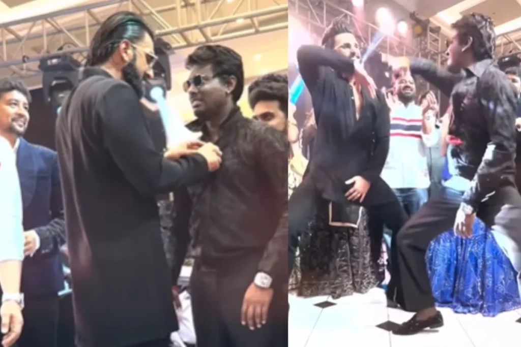 वीडियो की बात करें तो इसमें आप देख सकते हैं कि एटली कुमार और रणवीर सिंह ऑल ब्लैक लुक में नजर आ रहे हैं।वहीं रणवीर ने पहले डायरेक्टर के शर्ट के बटन खोलकर उनके माले को बाहर निकाला। एक्टर ने उनके बालों को संभाला और इतने में एटली कुमार ताबड़तोड़ अपने डांस स्टेप से लोगों का दिल जीत गए। यह वीडियो वाकई काफी मजेदार है क्योंकि जब निर्देशक डांस करने लगे तो वह एक बार भी नहीं रुके और सामने खड़े रणवीर सिंह देखते ही रह गए। शायद उन्होंने उम्मीद नहीं की थी कि एटली कुछ इस कदर धमाल मचाएंगे।