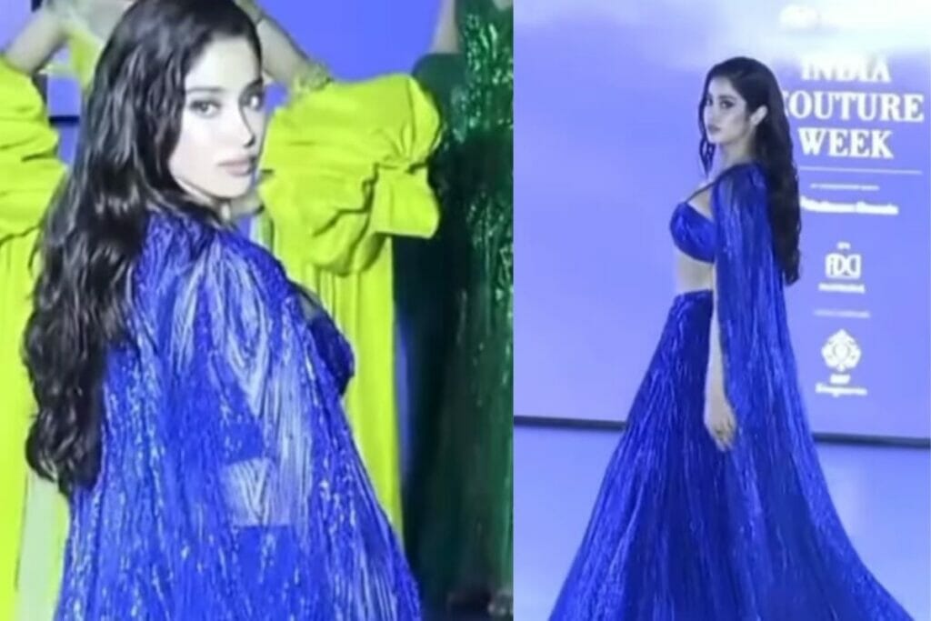 Janhvi Kapoor : बॉलीवुड अभिनेत्री जाह्नवी कपूर बड़े ही कम समय में दर्शको के दिलों में अपनी काफी ख़ास जगह बनाने में कामयाब हुई है | फ़िल्मी परिवार से होने के बावजूद उन्होंने इंडस्ट्री में अपनी एक अलग जगह बना ली है, “गुंजन सक्सेना” में अपने अभिनय के लिए काफी सराहना बटोरने वाली अभिनेत्री हालिंया में रैंप वॉक करती नज़र आयी | गौरव गुप्ता द्वारा तैयार की गयी ब्लू कलर की ड्रेस में जाह्नवी काफी खूबसूरत दिख रही हैं, उनकी ड्रेस बहुत ही शानदार नजर आती है और बहुत ही बेहतरीन मेकअप ने उनकी खूबसूरती में चार चाँद लगा दिए हैं | इस ब्लू कलर के ट्रेडिशनल ऑउटफिट में जाह्नवी पूरी तरह से शो स्टीलर दिखाई पड़ती है |