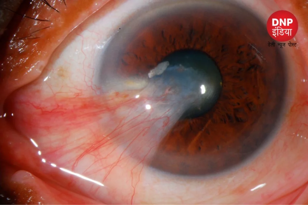 इस बीमारी को सर्फर आई के नाम से भी जाना जाता हैं। इस बीमारी की शुरूआत में आखों के सफेद भागों पर एक बादल जैसी परत बनी शुरू हो जाती हैं। यह परत बाहरी तरफ से बनते हे आंखों को अंदर तक जाती हैं। इस स्थिती में आंखों के सफेद भाग में पूरी गुलाबी नसे दिखना शुरू हो जाती हैं।