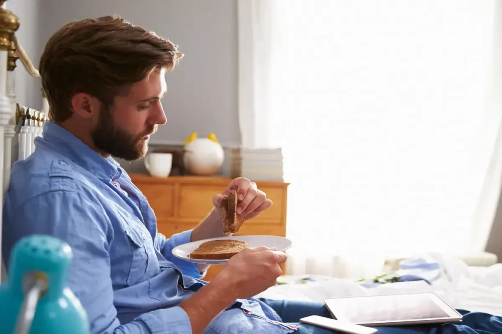 Health Tips: मौजूदा समय में लोगों ने खराब लाइफस्टाइल की वजह से अपने शरीर को बर्बाद कर दिया है। अक्सर लोग बेड पर बैठकर ही भोजन करना पसंद करते हैं। ऐसे में अगर आप भी इस आदत को अपनाते हैं तो तुरंत सावधान हो जाए। क्योंकि बेड पर बैठकर भोजन करने से हमारा स्वास्थ्य काफी ज्यादा खराब हो जाता है। इसी के साथ कुछ लोगों का मानना है कि, बेड पर बैठकर खाने से बुरे सपने भी आते हैं।