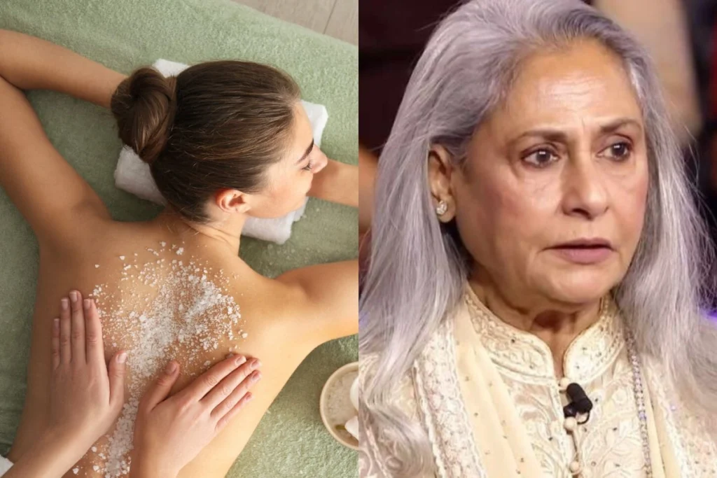 Salt Massage Benefits: आपने त्वचा यानी की स्किन की मसाज के लिए कई तरह की चीजों का इस्तेमाल होते हुए सुना और देखा होगा, लेकिन नमक की मसाज के बारे में शायद ही सुना हो। शरीर पर नमक रगड़ना कितना फायदा देता है? इस टिप्स की जानकारी खुद एक्ट्रेस और सांसद Jaya Bachchan उनकी बेटी Shweta Bachchan और नातिन Navya Naveli Nanda ने एक पॉडकास्ट में दी है। जया बच्चान हफ्ते में दो से तीन पर अपनी बॉडी पर नमक से मसाज करती हैं। इस वीडियो में वह बता रही हैं कि, शरीर पर नमक रगड़ने से काली नजर नहीं लगती है वहीं, नेगेटिव एनर्जी भी दूर रहती है। इतना ही नहीं इससे स्किन शाइन करती है और ग्लो करती है। वह बता रही है कि, नमक की मसाज से नजर नहीं लगती है। वहीं, कई हेल्थ से जुड़े फायदे भी मिलते हैं।
