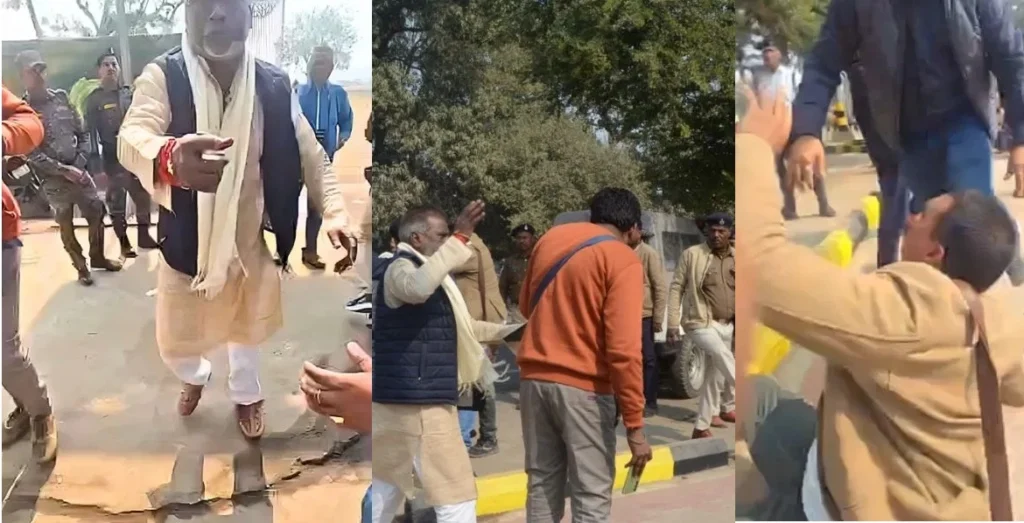 Bhagalpur Viral Video: बिहार से एक शर्मनाक खबर सामने आई है। जेडीयू सांसद अजय मंडल पर पत्रकारों से बदसलूकी, गाली-गलौज और मारपीट कर मानवता को शर्मसार करने का आरोप लगा है। पुलिस प्रशासन मूकदर्शक बनी हुई है। इस घटना से जुड़े ऑडियो क्लिप और खबरें सोशल मीडिया पर आग की तरह फैल रही हैं। गुंडागर्दी के Bhagalpur Viral Video की दिल्ली के लुटियंस जोन इलाके से लेकर बिहार के सियासी गलियारों तक खूब चर्चा हो रही है। घटना के कई घंटे बीत जाने के बाद भी सत्ताधारी जनता दल यूनाइटेड की ओर से कोई बयान जारी नहीं किया गया है। वहीं, बिहार से लेकर देश की राजधानी तक के पत्रकारों में इस घटना की सच्चाई जानने की होड़ मची हुई है।