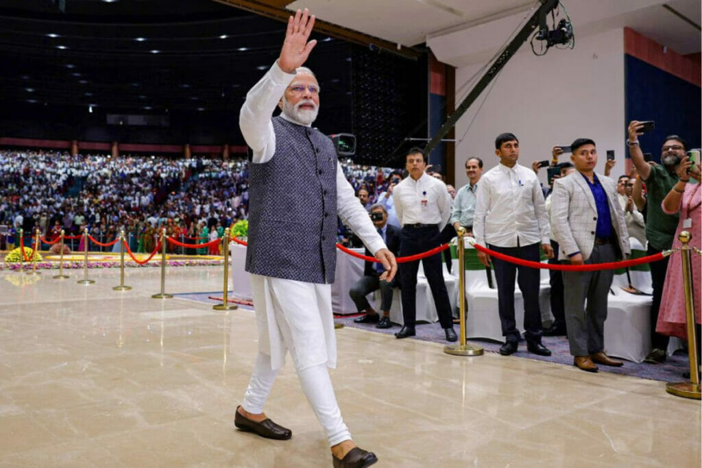 भारत के प्रधानमंत्री नरेंद्र मोदी ने बुधवार को दिल्ली स्थिति प्रगति मैदान में ‘भारत मंडपम’ का उद्घाटन करने के बाद लोगों को संबोधित किया। इस दौरान उन्होंने कई बड़ी बातें कही। इसमें सबसे अहम बात यह है कि उन्होंने कहा,“ भारत मंडपम को देखकर हर भारतीय आनंदित है साथ ही वह इसके बनने से गर्व की अनुभूति भी कर रहा है। ‘भारत मंडपम’ देश के सामर्थ्य और नई ऊर्जा का आह्वान के साथ–साथ भारत की भव्यता और इच्छाशक्ति का दर्शन भी है।