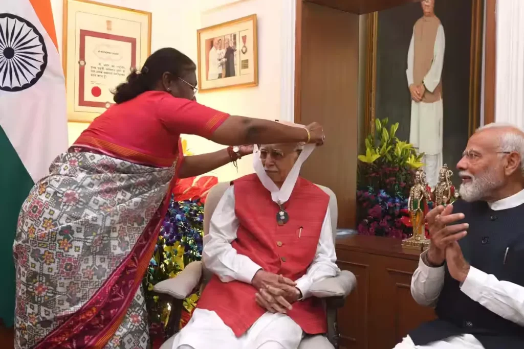 राष्ट्रपति द्रौपदी मुर्मू ने दिल्ली में भाजपा के वरिष्ठ नेता लालकृष्ण आडवाणी के आवास पर उन्हें भारत रत्न से सम्मानित किया। इस मौके पर प्रधानमंत्री नरेंद्र मोदी, उपराष्ट्रपति जगदीप धनखड़, पूर्व उपराष्ट्रपति एम. वेंकैया नायडू भी मौजूद रहे। स्वास्थ्य संबंधित समस्याओं के कारण उन्हें घर पर ही भारत रत्न से सम्मानित किया गया। गौरतलब है कि कल यानि 30 मार्च 2024 को राष्ट्रपति ने 4 विभूतियों को भारत रत्न से सम्मानित किया था।