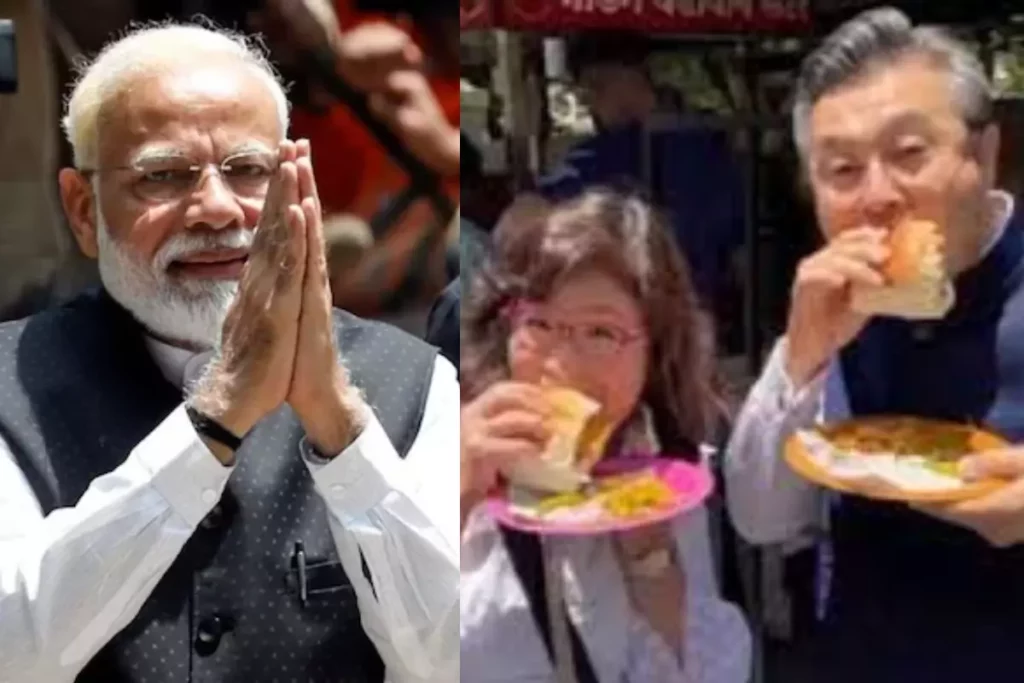 जापानी राजदूत हिरोशी सुजुकी की तरफ से ट्विटर पर जारी किए गए वीडियो में अपनी पत्नी के साथ भारतीय स्ट्रीट फूड का स्वाद चखते देखा जा सकता है। जिसमें वह मसाला पाव को खाते दिख रहे हैं। जापानी राजदूत जहां कम मसालेदार पाव खाने के लिए चुनते हैं तो दूसरी उनकी पत्नी मसालेदार खाने की तरफ आकर्षित होती हैं। अपने इसी वीडियो को ट्विटर पर साझा करते हुए जापानी राजदूत भारतीय स्ट्रीट फूड की तारीफ करते हुए लिखते हैं कि “मुझे भारत का स्ट्रीट फूड पसंद है, लेकिन थोड़ा तीखा कम।” ऐसे ही एक अन्य वीडियो को ट्विटर पर शेयर करते हुए राजदूत ने लिखा कि “मेरी पत्नी ने मुझे हरा दिया।” उनके इसी वीडियो ने पीएम मोदी का ध्यान खींच लिया।