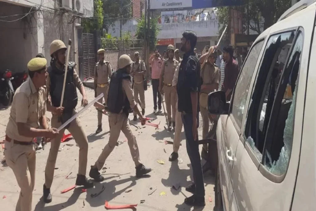 पुलिस ने दंगाइयों को तितर-बितर करने के लिए किया लाठीचार्ज
