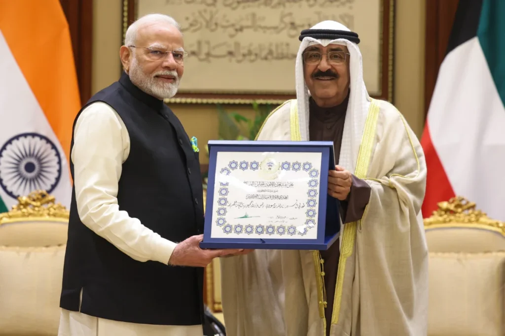 आपको बता दें कि प्रधानमंत्री नरेंद्र मोदी ने अपने सोशल मीडिया प्लेटफार्म एक्स पर जानकारी देते हुए लिखा कि “मैं कुवैत के महामहिम अमीर शेख मेशाल अल-अहमद अल-जबर अल सबा द्वारा मुबारक अल-कबीर ऑर्डर से सम्मानित होने पर सम्मानित महसूस कर रहा हूं। मैं यह सम्मान भारत के लोगों और भारत और कुवैत के बीच मजबूत दोस्ती को समर्पित करता हूं”।