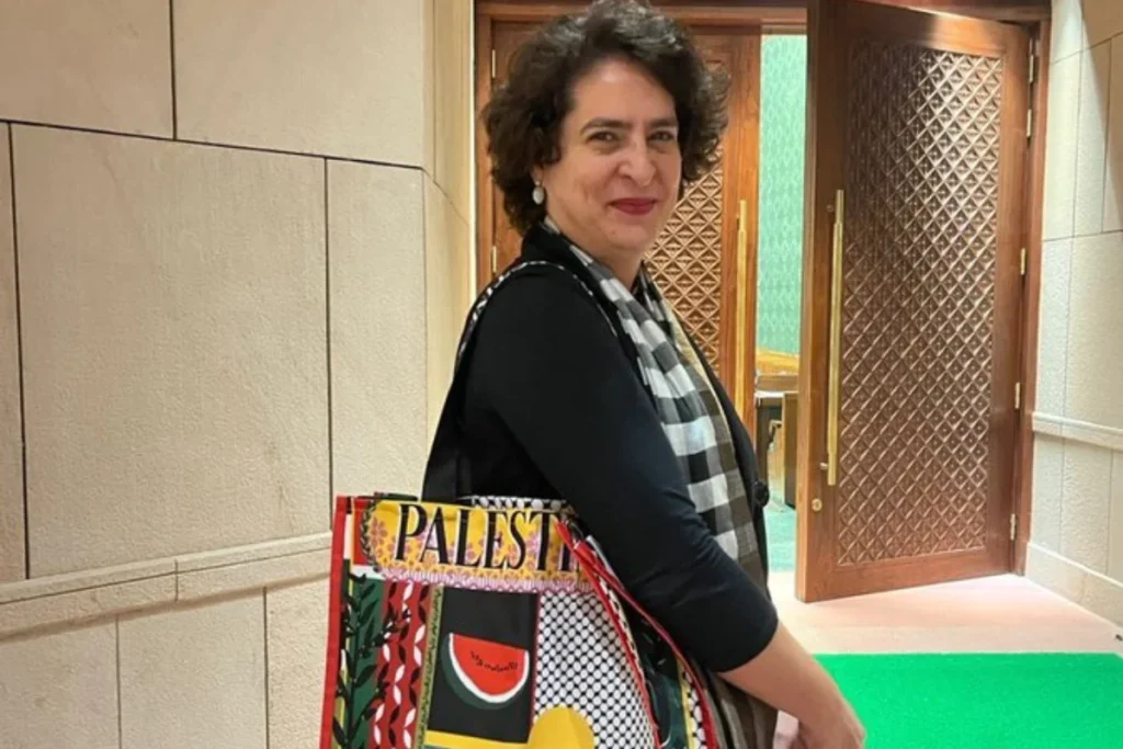 Priyanka Gandhi: कांग्रेस की दिग्गज नेता प्रियंका गांधी वाड्रा (Priyanka Gandhi Vadra) अक्सर अपने बयानों से विपक्षी खेमे को घेरती हैं। मगर फिलहाल वह खुद ही घिरती हुई नजर आ रही हैं। दरअसल, सोमवार को संसद जाते हुए उनके पास एक कैरी बैग था। बैग पर फिलिस्तीन (Palestine) लिखा हुआ था। इसके बाद इंटरनेट पर इसे लेकर तरह-तरह के रिएक्शन सामने आने लगे हैं। एक्स यानी ट्विटर पर एक यूजर ने प्रियंका गांधी वाड्रा को ‘भारत की महिला यूनुस’ करार दे दिया। इसके साथ ही कई और चौंकाने वाली प्रतिक्रियाएं सामने आई है।
