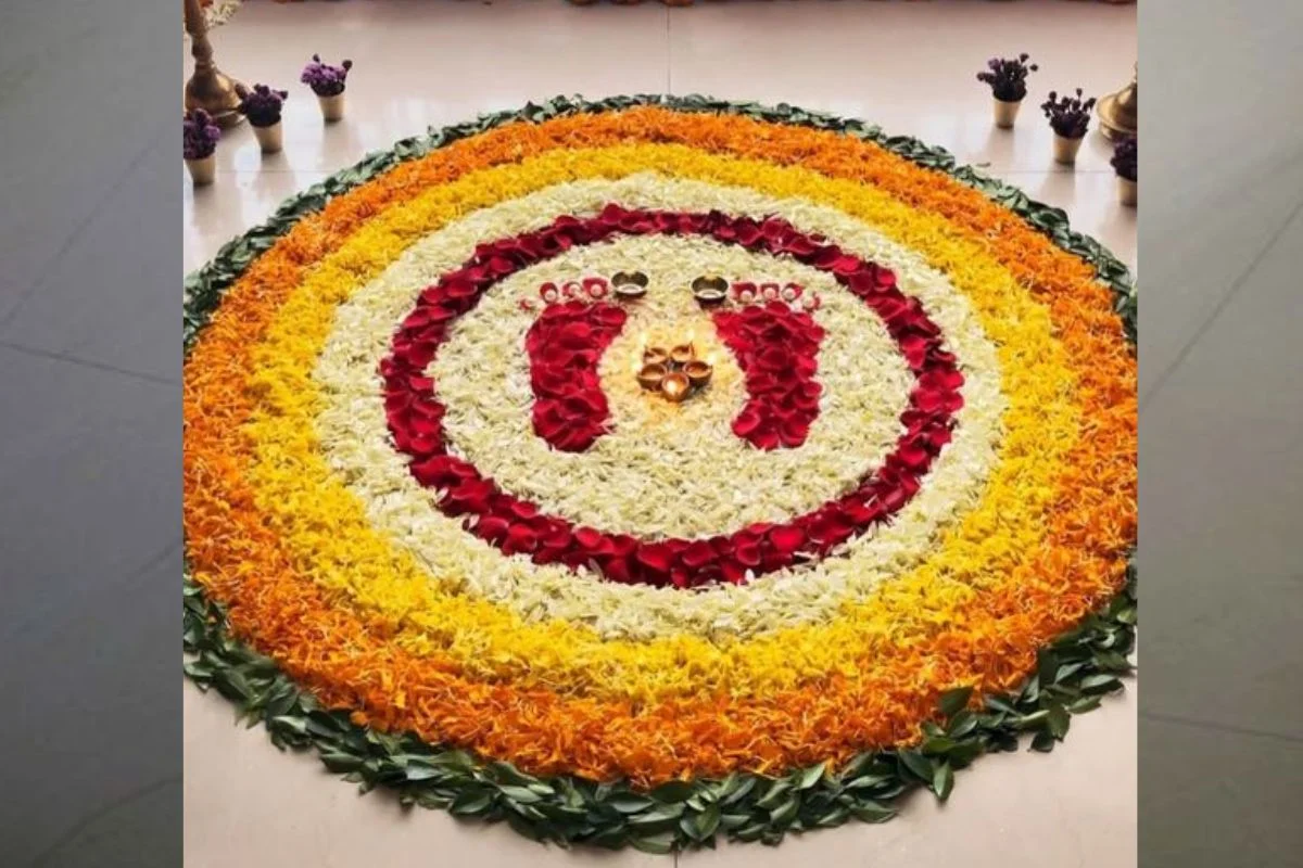 अगर आप कुछ हटके बनाना चाहते हैं तो आप बसंत पंचमी 2026 पर इस पद चिन्ह के भी डिजाइन को तैयार कर सकते हैं जो फूल और पत्तियों से बनाई गई है। यह निश्चित तौर पर काफी खूबसूरत है और इसके लिए आपको ज्यादा समय की भी जरूरत नहीं पड़ेगी।
