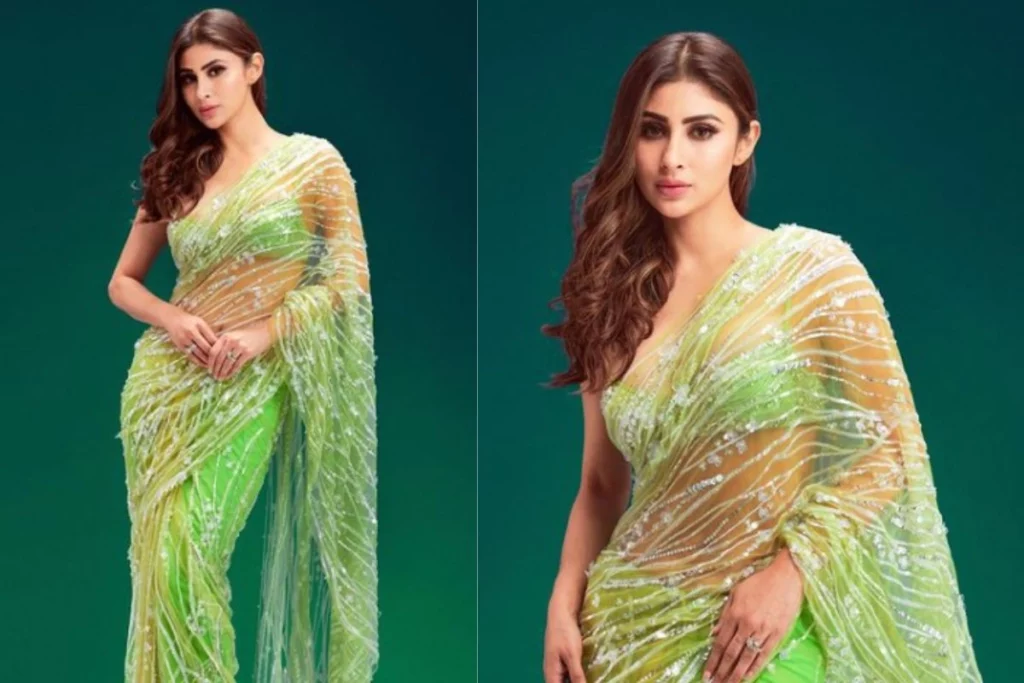 मौनी रॉय ने अपने इंस्टा ग्राम हैंडल पर कुछ फोटोस शेयर करके इंस्टाग्राम पर कहर मचा दी है। इन फोटोस में मौनी ने लाइट ग्रीन कलर की साड़ी पहनी है। यह साड़ी पूरी नेट की है। इसमें नेट की साड़ी में पूरा वर्क किया हुआ है जिस कारण से इस साड़ी का लुक काफी रॉयल और हेवी दिख रहा है। इसके साथ मौनी ने ब्रालेट ब्लाउज पहना हुआ है। मौनी ने अपने बालों को सिंपल खुले रखा है। इसमें उन्होंने मेकअप भी एकदम नॉर्मल ही किया है, केवल आंखों में थोड़ा बोल्ड लाइनर अप्लाई किया हुआ है। आप भी इस तरह ग्रीन साड़ी को इस सावन के मौके पर पहन सकते हैं। वैसे भी सावन में ग्रीन या हरा रंग काफी अच्छा माना जाता है।