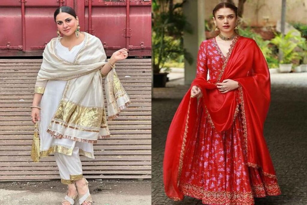 इस लिस्ट में दूसरा नाम प्रिंटेड अनारकली सूट का आता है। अगर आप कुछ हैवी स्टाइल करने की सोच रही है तो आपके लिए ये ऑप्शन बेस्ट है। अनारकली का फैशन कभी खत्म नहीं होता। ऐसे में अगर आप अपने लुक में चार चांद लगाना चाहती हैं तो आप इस तरह के अनारकली सूट को पहन सकती हैं। वही अपने लुक को और खूबसूरत बनाने के लिए आप मेसी हेयर बन बना सकती है।