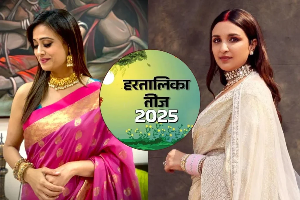 Hartalika Teej 2025: 26 अगस्त को हरतालिका तीज का व्रत है जो सुहागिन महिलाओं के लिए काफी खास मायने रखता है। हिंदू धर्म की मान्यताओं के अनुसार इस दिन निर्जला व्रत रखकर सुहागिन महिलाएं पूजा करती हैं और दांपत्य जीवन के लिए भगवान से आशीर्वाद मांगती हैं। ऐसे में महिलाएं इस खास मौके पर तैयार भी होती है। अगर आप भी अलग दिखना चाहती है तो बॉलीवुड एक्ट्रेस से प्रेरित हो सकती है। श्वेता तिवारी से लेकर परिणीति चोपड़ा तक का यह Hartalika Teej 2025 लुक खास है।