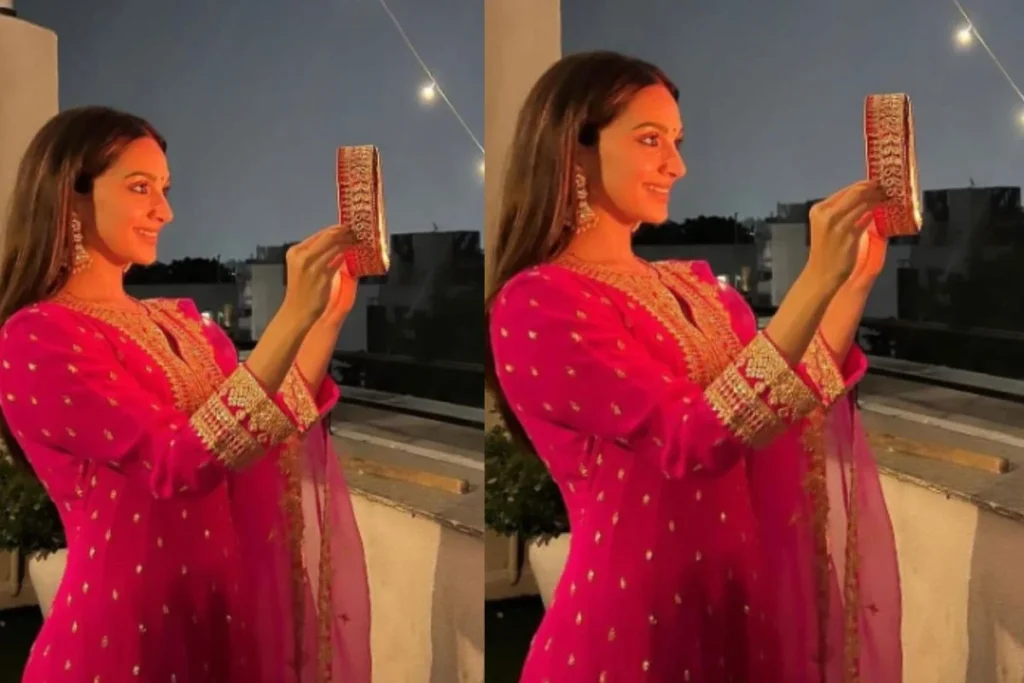 करवा चौथ 2025 पर आप कियारा आडवाणी के लुक को भी ट्राई कर सकती हैं जो अपने आप में काफी यूनिक है। पिंक और गोल्डन वर्क के साथ कुर्ता सेट में सिर्फ इयररिंग्स और माथे पर बिंदी लगाकर आप सिंपल और मॉडर्न नजर आएंगी जो देखकर सब आपके करवा चौथ लुक की तारीफ करने वाले हैं।