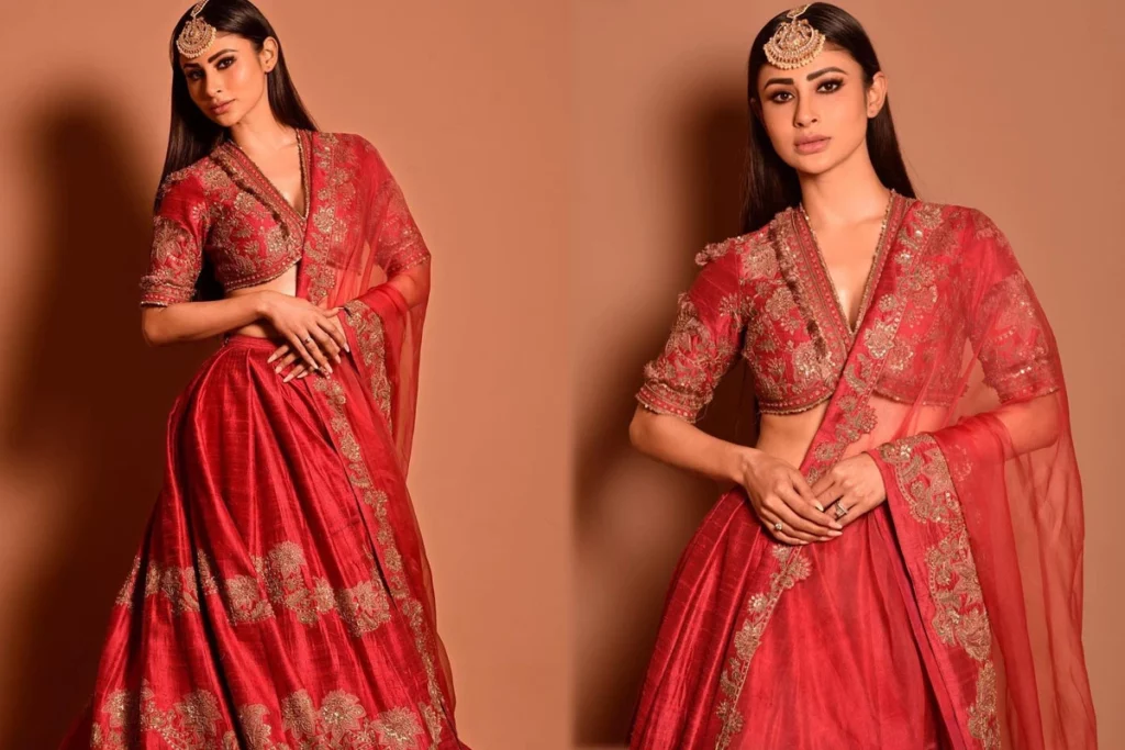 रेड लहंगे में कमाल की नजर आ रही हैं मौनी
