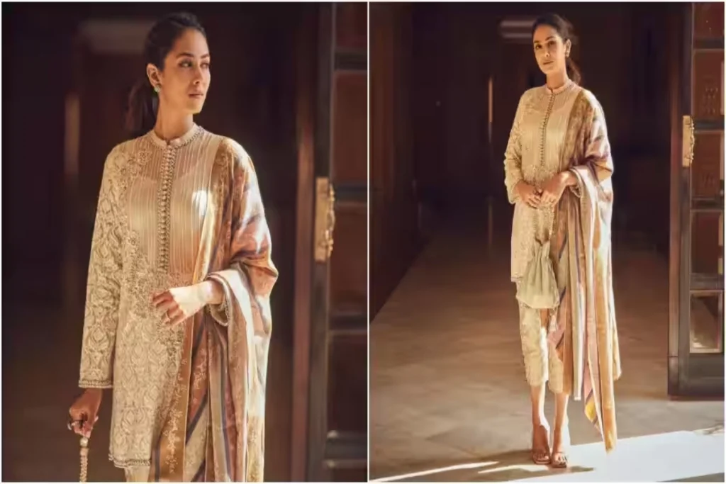 मीरा का यह ऑउटफिट होली के लिए परफेक्ट है। गौरतलब है कि उन्होंने यह ड्रेस बॉलीवुड एक्टर सिद्धार्थ मल्होत्रा और कियारा आडवाणी की शादी के लिए कैरी की हुई थी। इस दौरान मीरा व्हाइट थ्रेड एम्ब्रायडरी कुर्ती के साथ मैचिंग काल्फ लेंथ पैंट को टीमअप किया। इस लुक को उन्होंने मैचिंग कलरफुल शाल से कम्पलीट किया है। मीरा की कुर्ती में वह बटन को फ्लॉन्ट कर रही है जो इसे खास बना रहा है। उन्होंने इस लुक को मैचिंग पोटली बैग से कम्पलीट किया है।