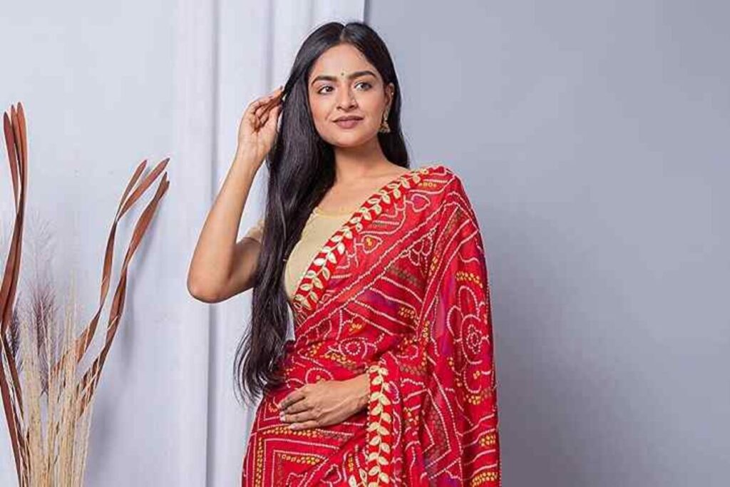 रेड कलर चुनरी प्रिंट साड़ी