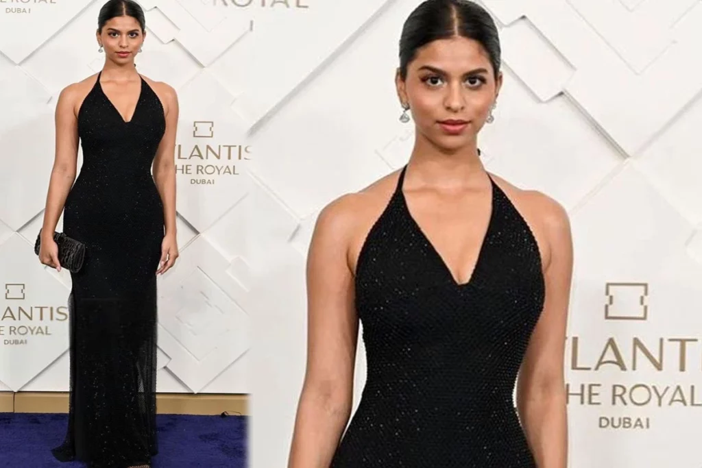 हाल ही में वह दुबई में पार्टी में ब्लैक शिमरी बॉडी कॉन ड्रेस में नजर आई थी। इस ड्रेस को अल्टर नेक की तरह डिजाइन किया हुआ है जो इस ऑउटफिट को खास बना रहा है। इस दौरान सुहाना बालों को खुला ना रखकर बल्कि बन बनाया हुआ है। इस लुक को न्यूड मेकअप से कम्पलीट किया है। मिली जानकारी के मुताबिक उनका मेकअप जेसीटाब्ला ने किया है और उनकी ड्रेस एंटोनिया ब्रॉन्ज क्लोदिंग ब्रांड की है और उसे निकिता करिज्मा ने डिजाइन किया है। सुहाना ने ईयररिंग्स और मैचिंग ब्लैक हैंडबैग कैरी किया है।