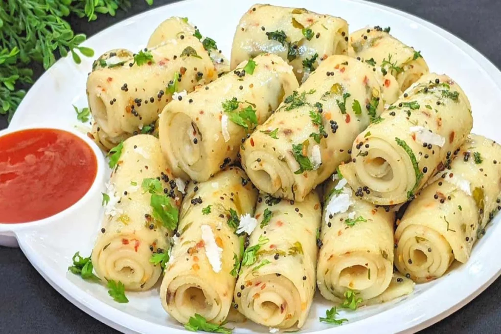 स्टेप 8: अब बनाया हुआ रोल तड़के में डालें और हल्का का खांडवी को फ्राई कर लें और बेहतर ढंग से परोसें।