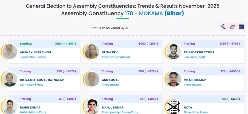 मोकामा में बाहुबली अनंत सिंह को मिल रही कड़ी टक्कर – Bihar Election Results 2025