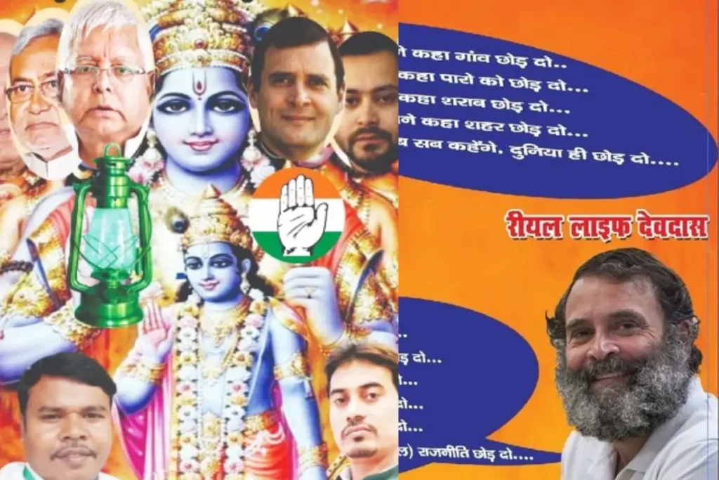 Opposition Meeting बिहार के पटना में विपक्ष की बैठक के साथ ही पोस्टर वार शुरू हो गया है। इस समय पटना की सड़कें पोस्टरों से भरी हुई हैं। एक ओर जहां विपक्षी एकता के पोस्टर लगे हुए हैं, तो दूसरी तरफ BJP ने भी कई जगह पोस्टर लगाए हैं। दोनों एक दूसरे पर निशाना साध रहे है। विपक्षी एकता के पोस्टरों में जहां विपक्ष को भगवान विष्णु के रूप में दिखाया गया है, तो वहीं BJP ने कांग्रेस नेता राहुल गांधी पर निशाना साधते हुए उन्हें देवदास बताया है। पोस्टर में उनकी फोटो के साथ देवदास फिल्म के डायलॉग भी लिखे गए हैं।