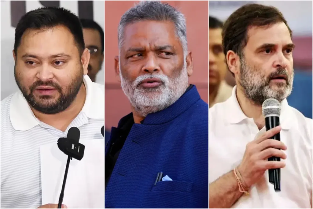 Pappu Yadav: पूर्णिया सांसद एक बार फिर भरे मंच से बड़ा बयान देते नजर आए हैं। एनडीटीवी ‘पावर प्ले – बिहार’ के मंच से पप्पू यादव ने महागठबंधन में नेतृत्व का जिक्र किया है। पप्पू यादव ने साफ तौर पर कहा है कि महागठबंधन के चुनावी मुद्दे राहुल गांधी के हैं। वहीं तेजस्वी यादव को विपक्ष का चेहरा भी बताया है। हालांकि, पप्पू यादव खुद से तेजस्वी यादव को चेहरा मानने से कतराते नजर आए हैं। पूर्णिया सांसद ने कहा है कि ‘तेजस्वी यादव महागठबंधन का चेहरा हैं। मैं महागठबंधन के साथ हूं।’ ऐसे में ये स्पष्ट है कि पप्पू यादव अप्रत्यक्ष तौर पर ही सही, लेकिन तेजस्वी यादव को चेहरा मान चुके हैं।