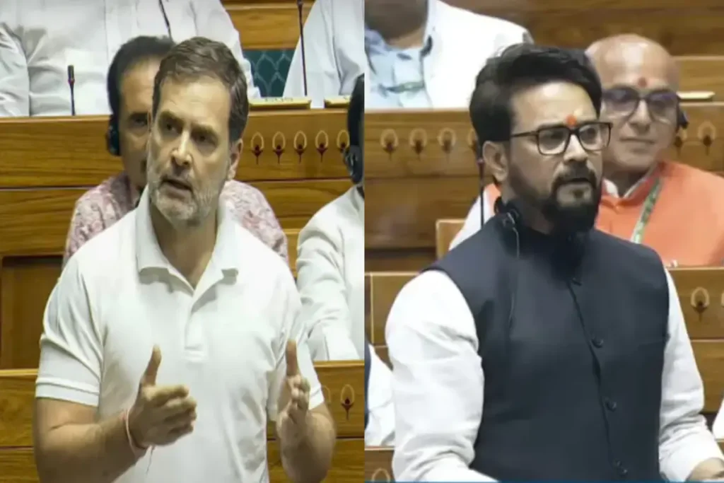 लोकसभा में राहुल गांधी (Rahul Gandhi) के संबोधन के दौरान बीजेपी सांसद अनुराग ठाकुर (Anurag Thakur) ने उन्हें करारा जवाब दिया। अनुराग ठाकुर ने कहा कि “आप सिर्फ संविधान लेकर घूमते हैं। आप संविधान बचाने की बात करते हैं लेकिन इसे खोलकर पढ़ते नहीं। आप इसे पढ़ेंगे तो समझ आएगा कि गांधी परिवार और कांग्रेस पार्टी ने संविधान की धज्जियां उड़ाने की कोशिश की थी।”