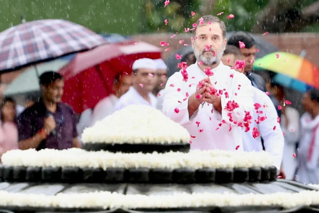 दिल्ली में भारी बारिश के बीच नेता प्रतिपक्ष राहुल गांधी वीरभूमि पहुंचें। जहां उन्होंने अपने दिवंगत पिता को श्रद्धांजलि दी। इसी बीच राहुल गांधी ने अपने सोशल मीडिया प्लेटफार्म एक्स पर लिखा कि