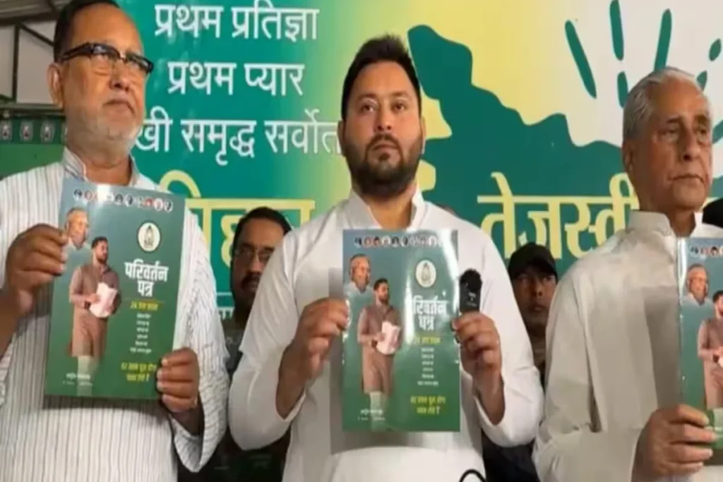 Tejashwi Yadav: लोकसभा चुनाव 2024 से पहले पार्टियों ने अपना घोषणा पर जारी करना शुरू कर दिया है। बता दें कि इससे पहले कांग्रेस और समाजवादी पार्टी ने घोषणा पत्र जारी किया था। वहीं आज बिहार के पूर्व मुख्यमंत्री Tejashwi Yadav ने पार्टी के अन्य नेताओं के साथ Lok Sabha Election 2024 से पहले परिवर्तन पत्र जारी कर दिया है। घोषणा पत्र को जारी करते हुए राजद नेता तेजस्वी यादव ने कहा कि, “आज हमने अपना ‘परिवर्तन पत्र’ जारी किया है। हम 2024 में 24 वादे ला रहे हैं, जो हमारी प्रतिबद्धता है जिसे हम पूरा करेंगे। इसमें बिहार के विकास से जुड़े कई महत्वपूर्ण मुद्दे हैं।”