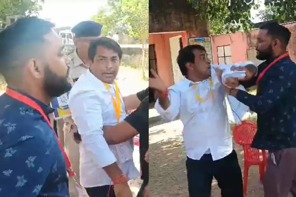 Viral Video: सोशल मीडिया पर राजस्थान विधानसभा उपचुनाव 2024 से जुड़ा एक वीडियो तेजी से वायरल हो रहा है। वायरल वीडियो में देवली उनियारा विधानसभा सीट से निर्दलीय चुनाव लड़ रहे नरेश मीणा (Naresh Meena) को आपा खोते देखा जा सकता है। नरेश मीणा आनन-फानन में सरकारी अफसर अमित चौधरी (Amit Chaudhary) को थप्पड़ जड़ते नजर आ रहे हैं। देवली उनियारा के एक पोलिंग बुथ पर हुए इस थप्पड़कांड से जुड़ा वीडियो (Viral Video) सामने आने के बाद पुलिस के रवैये पर सवाल उठ रहे हैं। सोशल मीडिया प्लेटफॉर्म एक्स पर यूजर जमकर अपनी प्रतिक्रिया दे रहे हैं और अपने हिस्से की बात कह रहे हैं।