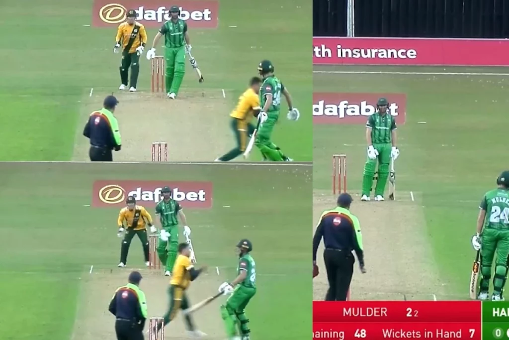 पारी का 13वां ओवर चल रहा था। इस दौरान गेदं की कमान कप्तान मुलैनी के हाथ में थी। इसी बीच ओवर की पहली ही गेंद पर उन्होंने गजब का शानदार कैच लपका। दरअसल, इस दौरान स्ट्राइक पर कोलिन एकरमैन बल्लेबाजी कर रहे थे। वहीं गेंद की कमान मुलैनी के हाथे में थी। ओवर की पहली ही गेंद पर बल्लेबाज ने बिल्कुल सामने की तरफ एक शॉट खेला। यह शॉट तीर की तरह एकदम सीधा था। यह गेंद गेंदबाज के हाथ से छिटक गई थी। इसके बाद नॉन-स्ट्राइकर एंड पर खड़े हुए विहान मल्डर के सीने पर गेंद लग गई। जिसे मुलैनी ने अपने हाथों में कैच पकड़ लिया। इसके बाद वह आउट होकर पवेलियवन लौटे।
