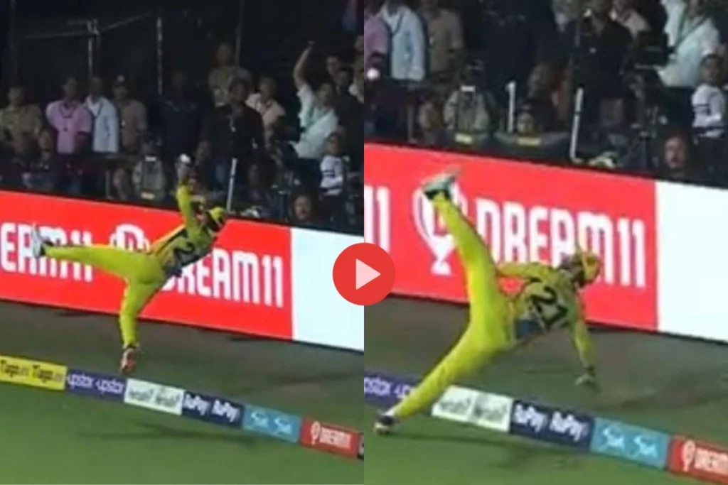 CSK VS RCB IPL 2023: चेन्नई सुपर किंग्स ने आज के इस मुकाबले में ताबड़तोड़ तरीके से बल्लेबाजी करते हुए 226 रन बनाए और रॉयल चैलेंजर्स बैंगलोर को 227 रनों का लक्ष्य दिया। ऐसे में आरसीबी की टीम कुछ खास तरीके से बल्लेबाजी नहीं कर पाई और सिर्फ 218 रन ही बना सकी।आरसीबी के टीम की गेंदबाजी भी आज खराब रही। चेन्नई के टीम बल्लेबजों ने धीमी शुरुआत की लेकिन डेवोन कॉनवे 6 छक्के और 6 चौंके जड़कर विशाल स्कोर खड़ा करा दिया। वही शिवम दुबे ने भी 52 रनों की पारी खेली। आज अंजिक्य रहाणे ने बाउंड्री पर एक बेहतरीन तरीके से फील्डिंग करते हुए चौके को रोका है। इस चौके के रोक जाने के बाद से ही वीडियो भी खूब वायरल हो रहा है।