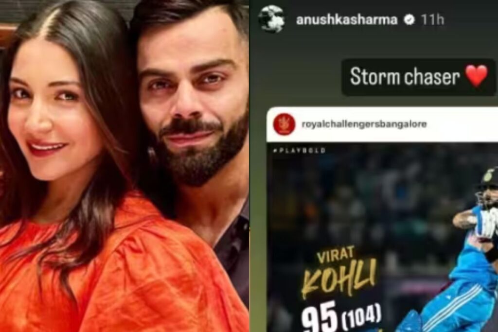 भारत और न्यूजीलैंड के खिलाफ विराट अपने शतक से तो चुके लेकिन उनकी 95 रन की पारी ने भारत को जीत जरूर दिलाई। विराट की इस दमदार पारी के बाद उनकी वाइफ अनुष्का शर्मा ने उनकी तारीफ की। अनुष्का शर्मा ने अपने सोशल मीडिया हैंडल इंस्टाग्राम पर विराट कोहली की बैटिंग करते हुए स्टोरी लगाई और तस्वीर शेयर की। इसके साथ ही अनुष्का ने लिखा,” तुम पर हमेशा गर्व है।”