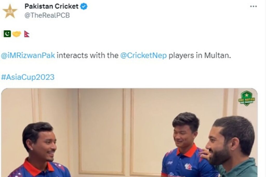 एशिया कप 2023 के शुरू होने में महज 1 दिन का समय रह गया है। एशिया कप का पहला मैच पाकिस्तान और नेपाल के बीच मुल्तान क्रिकेट स्टेडियम में खेला जायेगा। अब जाकर रिजवान की एक वीडियो इन दिनों सोशल मीडिया पर खूब वायरल हो रही है जिसमें वह एक नेपाली क्रिकेटर को कुछ कहते नजर आ रहे हैं। आपको बता दें कि वायरल वीडियो में रिजवान नेपाली क्रिकेटर से कह रहे हैं कि , आपको अगर किसी चीज कि जरुरत हैं तो मैं हाजिर हूं। अब अलग-अलग लोग रिजवान की इस बात पर अपनी प्रतिक्रया दे रहे हैं।