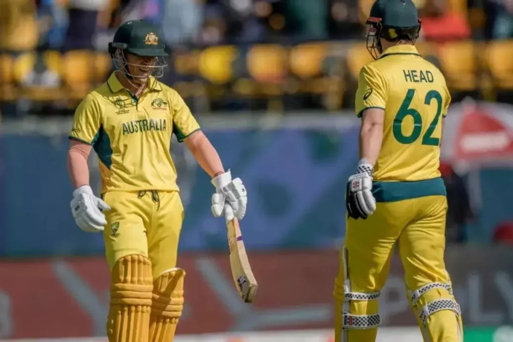 AUS vs NZ : वर्ल्ड कप 2023 का 27 वाँ मुक़ाबला आज ऑस्ट्रेलिया और न्यूज़ीलैंड के बीच धर्मशाला में खेला जा रहा है। इस मुक़ाबले में ऑस्ट्रेलिया के ओपनर्स ने टीम को ज़बरदस्त शुरुआत दिलाई। ऑस्ट्रेलिया के ओपनर डेविड वार्नर और ट्रैविस हेड ने पहले ही ओवर से न्यूज़ीलैंड पर दवाब बनाना चालू कर दिया। दोनों ने मिलकर पावरप्ले के 10 ओवर में एक बड़ा स्कोर बनाकर खड़ा कर दिया।