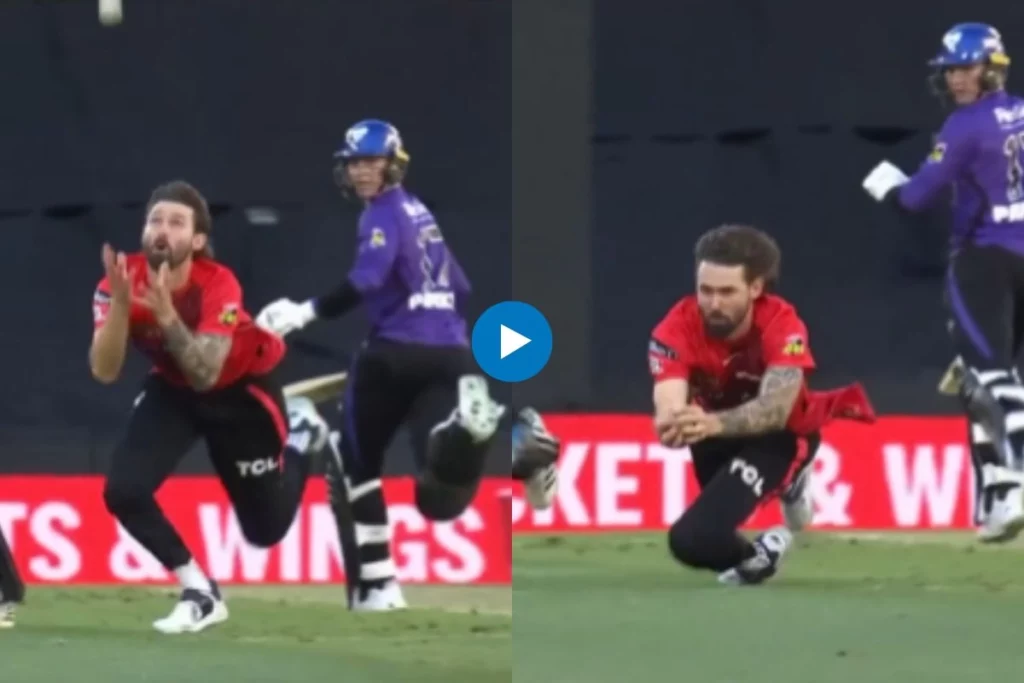 BBL 2022-23: ऑस्ट्रेलिया में चल रहे बिग बैश लीग 2022-23 (BBL 2022-23) में आज ग्रुप स्टेज का 32वां मैच मेलबर्न रेनेगेड्स और होबार्ट हरिकेंस के बीच मैच खेला जा रहा है। लेकिन आज के मैच में मेलबर्न रेनेगेड्स टीम के खिलाड़ी केन रिचर्डसन (Kane Richardson) ने एक बेहतरीन कैच लपक सबको हैरान कर दिया है। केन रिचर्डसन के कैच का वीडियो सोशल मीडिया पर जमकर वायरल हो रहा है।