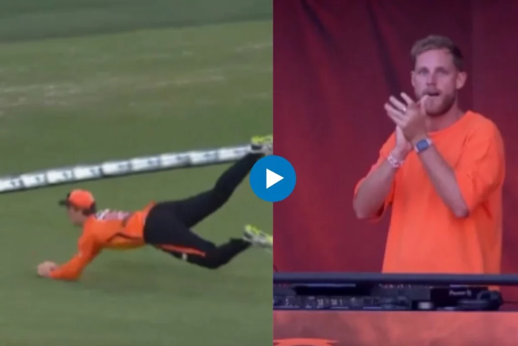 BBL 2022-23: ऑस्ट्रेलिया में खेले जा रहे बिग बैश लीग (BBL 2022-23) में आज 52वां मैच पर्थ स्कॉर्चर्स और मेलबर्न रेनेगेड्स के बीच खेला गया। बीबीएल में अबतक कुछ बेहतरीन कैच पकड़े गए लेकिन आज निक हॉब्सन (Nick Hobson) ने बाउंड्री लाइन पर एक शानदार कैच पकड़ लिया है। जिसका वीडियो खूब सोशल मीडिया पर वायरल हो रहा है। निक हॉब्सन का यह कैच देखकर मैच में म्यूजिक बजा रहे DJ वाले ने भी अपना काम छोड़ ताली बजानी शुरू कर दिया।