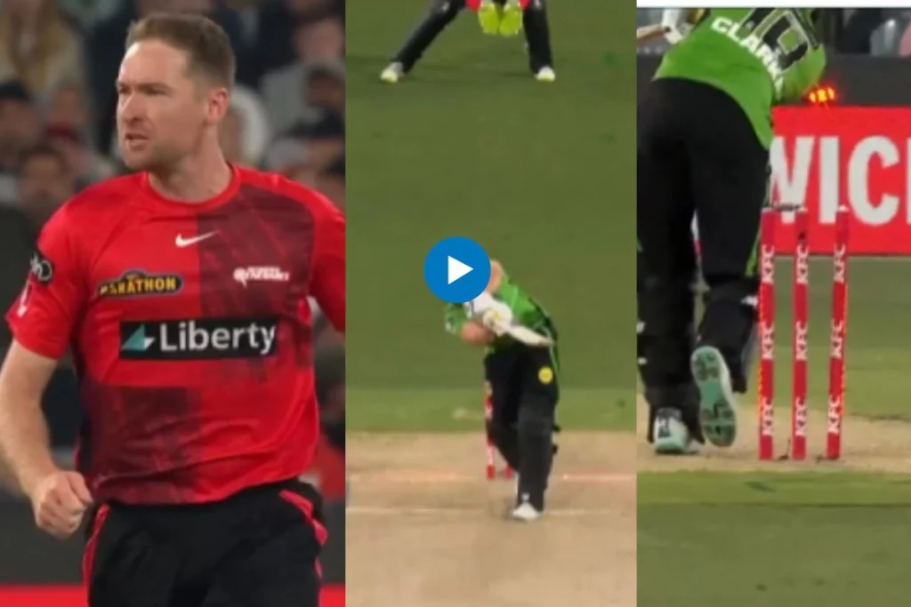 BBL 2022-23: ऑस्ट्रेलिया में खेले जा रहे बिग बैश लीग 2022-23 (BBL 2022-23) में आज ग्रुप स्टेज का 27वां मैच मेलबर्न स्टार्स और मेलबर्न रेनेगेड्स के बीच खेला जा रहा है। इस मैच में मेलबर्न रेनेगेड्स की टीम ने पहले बल्लेबाजी करते हुए 141/7 रन बनाए। लेकिन जब मेलबर्न रेनेगेड्स की टीम गेंदबाजी करने उतरी तो उनके टीम के तेज गेंदबाज टॉम रोजर्स (Tom Rogers) ने अपनी गेंद से तहलका मचा दिया। टॉम रोजर्स ने पहली गेंद पर ही विकेट झटक लिया जिसका वीडियो सोशल मीडिया पर जमकर वायरल हो रहा है।