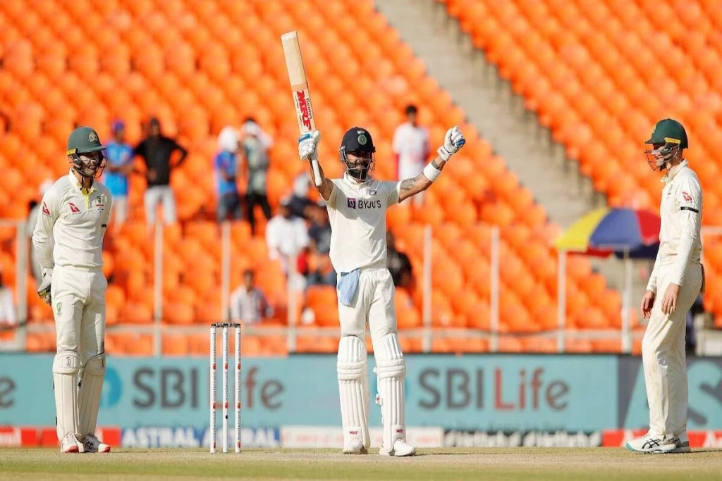 Border Gavaskar Trophy: भारत के दिग्गज बल्लेबाज विराट कोहली ने ऑस्ट्रेलिया के खिलाफ अहमदाबाद टेस्ट के चौथे दिन अपना 28वां टेस्ट शतक जड़ा। विराट कोहली ने टेस्ट फॉर्मेट में 1,205 दिनों के बाद एक शतक लगाया। उन्होंने आखिरी टेस्ट शतक नवंबर 2019 में लगाया था। ये अंतरराष्ट्रीय क्रिकेट में विराट कोहली का 75वां शतक था। अंतराष्ट्रीय क्रिकेट की बात करे तो पूरी दुनिया में विराट से ज़्यादा शतक केवल महान बल्लेबाज़ सचिन तेंदुलकर ही लगा सके है।