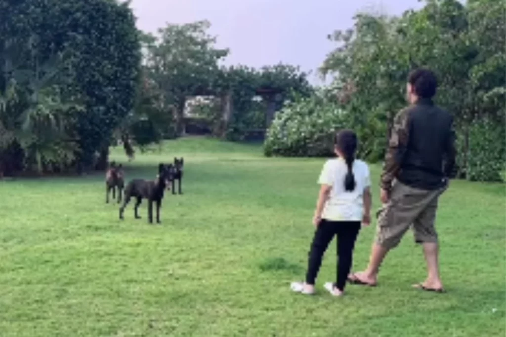 एमएस धोनी क्रिकेट के अलावा अपनी बेटी जीवा धोनी के साथ खेलते हुए नजर आते है। वह अपने फॉर्म आउट पर अक्सर घोड़े की सवारी या बाइक चलाते हुए नजर आते है। लेकिन, इस बार उनका जो वीडियो वायरल हो रहा वह एक दम हटके है। वायरल वीडियो को धोनी की पत्नी साक्षी धोनी ने अपने इंस्टा अकाउंट से शेयर किया है। जिसमें वह अपने पालतु कुत्तों के साथ खेलते हुए कैमरे में कैद हुए है। वहीं इस दौरान धोनी कुत्तों को बारी-बारी से गेंद लाने के लिए कह रहे है। जैसा धोनी उनसे बोल रहे है। वैसे-वैसे ही कुत्तें उनकी बात को मान रहे है। जिसका अंदाजा आप वायरल वीडियो को देख कर लगा सकते है।