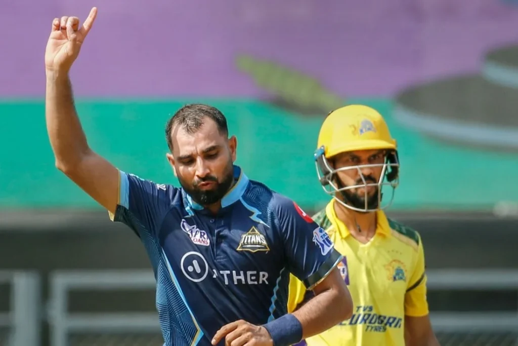 दरअसल, गुजरात टाइटंस के बेहतरीन तेज गेंदबाज मोहम्मद शमी ने आईपीएल 2023 की शानदार शुरुआत की है। शमी ने चेन्नई सुपर किंग्स के सलामी बल्लेबाज डेविड कॉन्वे को उनके निजी स्कोर (1) रनों पर क्लीन बोल्ड कर दिया। डेविड कॉन्वे के विकेट के साथ ही मोहम्मद शमी आईपीएल में 100 विकेट लेने वाले बल्लेबाज बन गए हैं। मोहम्मद शमी ने गुड लेंथ पर गेंद की और रफ्तार में गेंद हल्की आउट स्विंग होकर कॉन्वे का ऑफ स्टंप ले उड़ी।