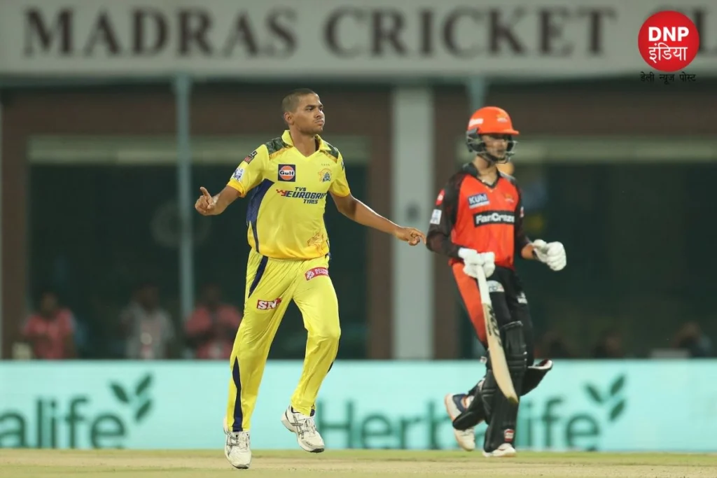 चेन्नई सुपर किंग्स के बेहतरीन तेज गेंदबाज आकाश सिंह ने पारी के 5वें ओवर में सनराइजर्स हैदराबाद को बड़ा झटका दिया। आकाश सिंह ने पारी के 5वें ओवर की दूसरी गेंद पर हैरी ब्रूक को सस्ते में आउट किया। आकाश सिंह ने हैरी को ऋतुराज गायकवाड़ के हाथों कैच कराकर आउट किया। हैरी ब्रूक ने 13 गेंदों पर 18 रन बनाए। इस दौरान तीन शानदार चौके लगाए। हैरी ब्रूक के आउट होने का वीडियो सोशल मीडिया पर जमकर वायरल हो रहा है। हैरी ब्रूक का वीडियो।